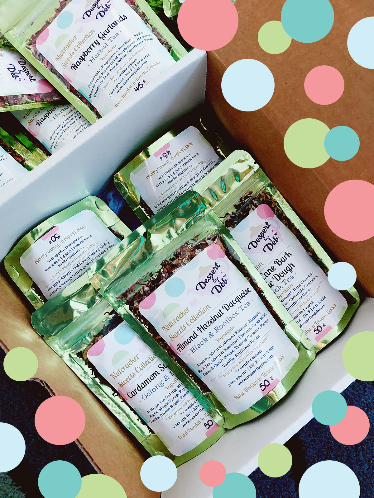 A: Starting in January 2026, I will have a rotating monthly selection of Dessert by Deb's catalogue back in the shop for everyone to order: 8 best sellers plus 2 "wild cards". The 2 wild card teas will be features from subscription boxes. For example, the 2 wild cards in April could feature teas from February's box and December's box, and they will change every month.